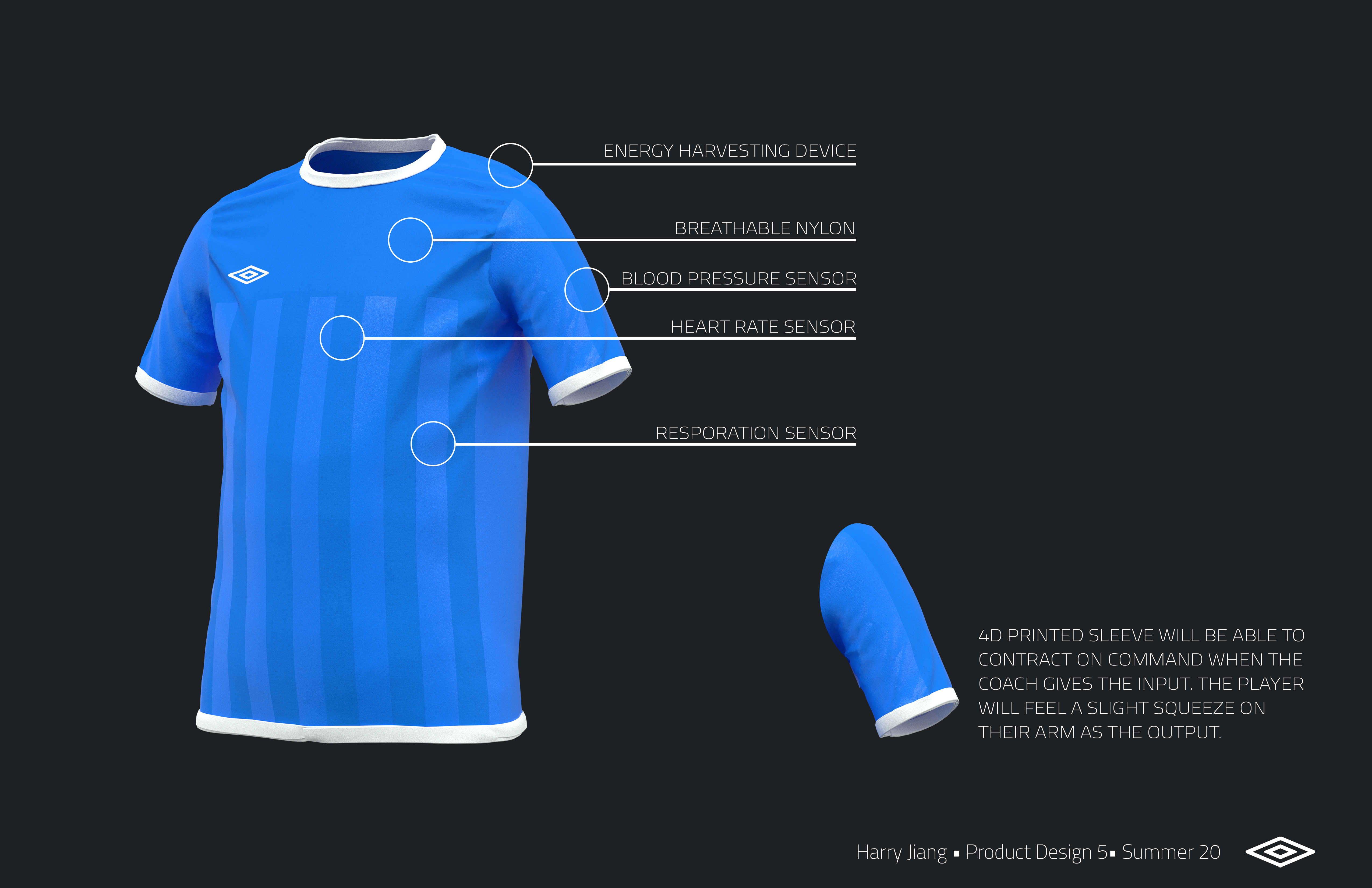 A soccer jersey that can contract on a different area to simulate human hand touches by tightening and expanding special fibers that were woven into the jersey. This is designed to allow coaches to adjust and guide player's positions during training in real-time.